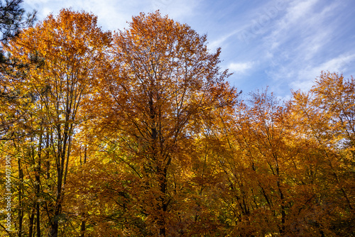 Autumn Forest Scenery with Warm Light Illumining the Gold Foliage. Yenice, Karabuk - Turkey