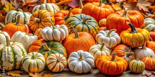 Autumn Harvest Festival: Vibrant Orange and White Gourds and Pumpkins Stacked in Rural Virginia