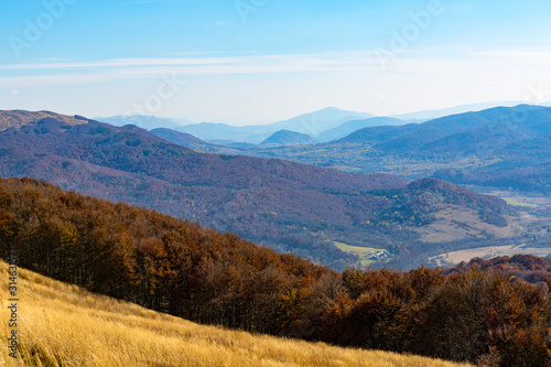 mountain, landscape, poland, autumn, october, colourful, red, nature, sky, grass, hill, view, hill, trekking, meadow, mountain, green, peak, panorama, national, path, tour tourism, europa, cloud, sunlight, skyline