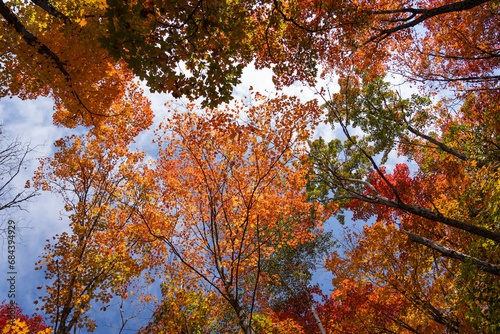 autumn, tree, fall, leaf, nature, sky, forest, yellow, tree, leaf, blue, red, tree branch, season, orange, maple, foliage, park, colours, bright, landscape, green, outdoors, gold, day