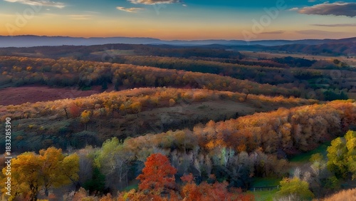 autumn, landscape, nature, tree, forest, sky, mountain, mountain, fall, tree, yellow, season, view, hill, sunset, colours, grass, foliage, sun, scenic, sunrise, park, green, fog, cloud