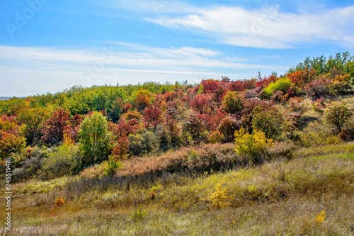 Autumn landscape with bright leaves of trees near Russian-Orlovka in Donbass 11