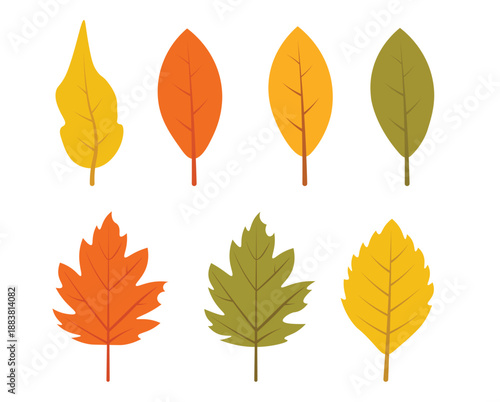 Autumn Leaf Illustration Set in Warm Fall Colors Isolated on White