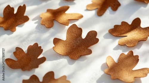 Autumn leaf shapes, sunlit surface, fall design, craft project, seasonal background