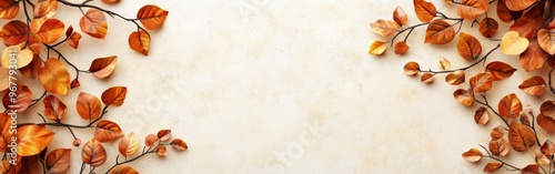 Autumn Leaves Border with Neutral Background for Seasonal Cards