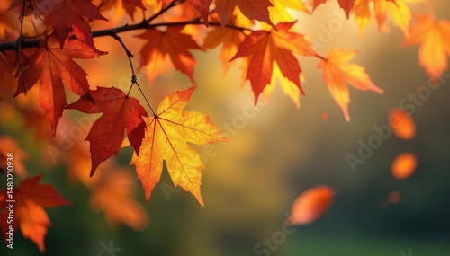 Autumn leaves falling from a tree branch, colorful foliage , scenery, macro