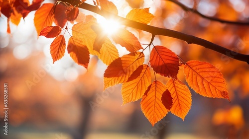 Autumn leaves in the sunlight, in the style of orange and crimson. AI generated.
