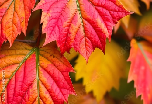 Autumn leaves in vibrant shades of red, orange, and yellow.