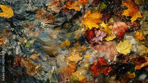 Autumn Leaves Submerged in a Flowing Stream