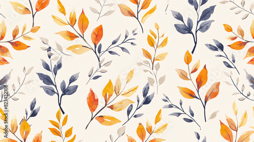 autumn, leaf, watercolor, seamless, pattern, fall, orange, blue, grey, nature, foliage, design, background, textile, print, botanical, seasonal, thanksgiving, invitation, card, wallpaper, scrapbooking, fabric, decoration, art, illustration, graphic, elegant, delicate, beautiful, vibrant, colourful, hand, painted, artistic, repeating, tileable, wrapping, paper, autumn, tree branch, twig, october, november, september, season, change, gold, yellow