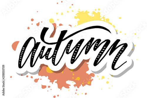 Autumn lettering Calligraphy Brush Text Holiday Vector Sticker Watercolor