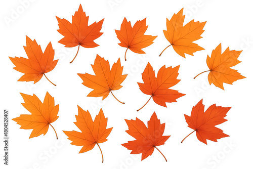 Autumn maple leaves falling, vibrant orange and red foliage, seasonal background element, transparent