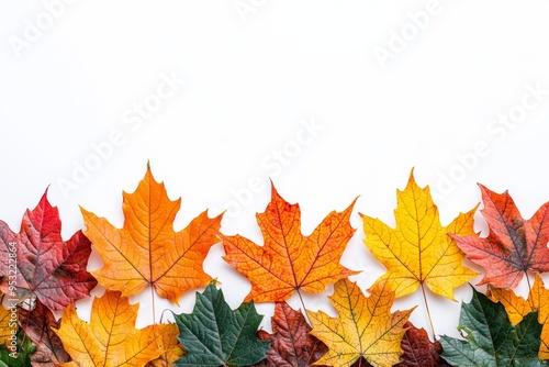 Autumn Maple Leaves Flat Lay White Background created with Generative AI