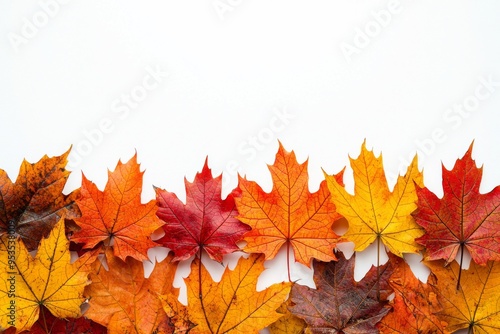 Autumn Maple Leaves Flat Lay White Background created with Generative AI