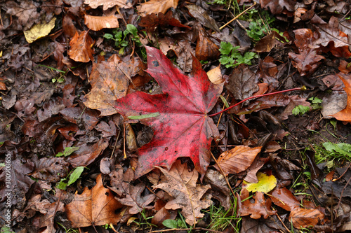 Autumn maple leaves lie on the ground