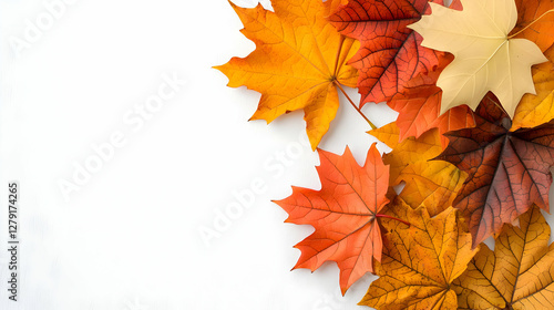 leaf, autumn, fall, maple, background, white, design, orange, red, yellow, nature, season, october, november, foliage, tree, colours, vibrant, colourful, harvest, thanksgiving, template, card, greeting, banner, image, illustration, photo, graphic, texture, frame, border, pattern, element, decoration, seasonal, collage, composition, plant, wood, holiday