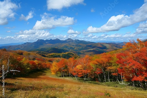 autumn, mountain, landscape, forest, tree, fall, nature, scenic, colourful, leaf, foliage, vibrant, orange, red, yellow, green, blue, sky, cloud, peak, vale, panorama, beautiful, serene, peaceful, travel, destination, japan