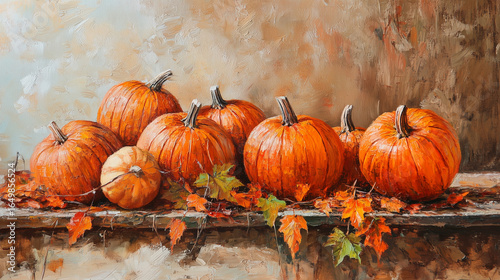 autumn leaf, fall foliage, maple leaf, acorn, chrysanthemum, berry, pumpkin, sunflower, goldenrod, aster, rustic, cosy, warm tones, amber, ocher, deep red, brown, gold, seasonal, autumn flowers, harvest, countryside, oil painting, hand-made, fine art, painterly