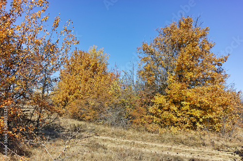 autumn, tree, fall, forest, nature, landscape, tree, sky, yellow, leaf, season, blue, birch, leaf, foliage, colours, aspen, green, park, orange, gold, colourful, wood, gold, wood, bulgaria, tour tourism, mountain, panorama, europa, travel, vacation, scene, sunny, mediaeval, destination, background, beautiful