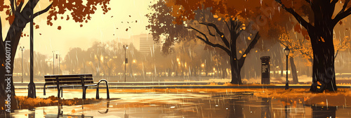 anime, manga, autumn, city landscape, beautiful, fall, rain, cosy, rainy day, peaceful, urban, tranquil, serene, city street, city landscape, nostalgic, colourful, autumn leaf, calming, warm tones, seasonal, street scene