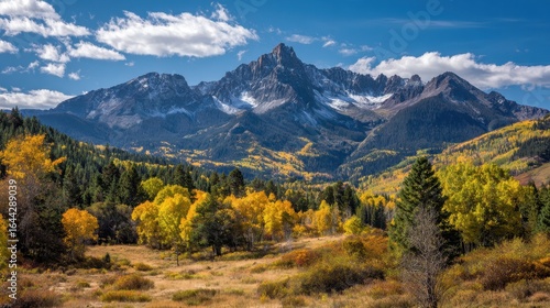 Autumn Serenity: Majestic Mount Sneffels in Ridgway, Colorado Surrounded by Vibrant Fall Foliage and Clear Blue Skies