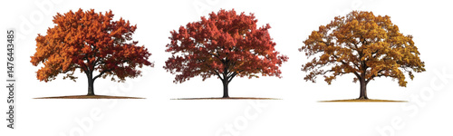 autumn trees: three colorful fall trees isolated on white background