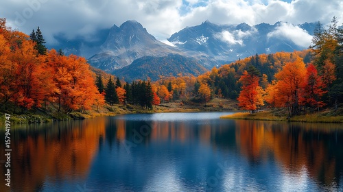Autumnal lake landscape with colorful foliage