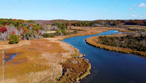 marsh, autumn, waterway, tree, colourful, fall, river, aerial, nature, landscape, vibrant, colours, scenic, flowing, foliage, grass, reed, water, timberland, blue, orange, brown, tranquil, autumn