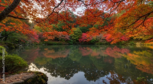 Autumnal Reflection - Vibrant Foliage and Serene Waterscape.