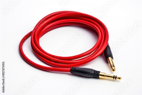 medical equipment, medical supplies, white background, audio equipment, single object, studio shot, background, earphones, technology, usb cable, closeup, isolated, cut-out, cable, music, white, aux, red