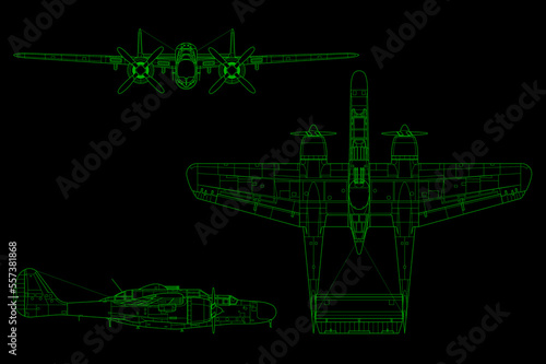 plane, warplane, hunt, by night, aviation, aircraft, aeroplane, twin-engine, helix