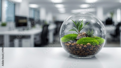 terrarium, awareness, healthy, workplace, lush, green, plant, rock, modern, office, environment, interior, design, vibrant, decorative, sleek, setting, aesthetic, promoting, peaceful, atmosphere