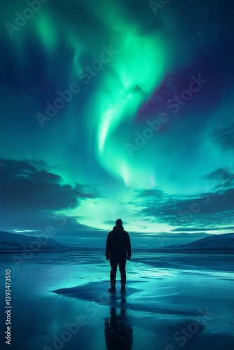 wonder, traveler, northern, light, amazement, vibrant, hue, green, purple, beauty, nature, sky, adventure, solitude, inspiration, life events, emotion, breathtaking, cosmic