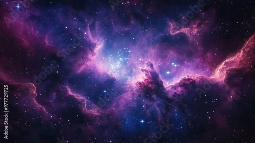 aweinspiring view of a vibrant nebula in deep space swirling clouds of purple and blue cosmic dust interspersed with brilliant stars creating a mesmerizing celestial tapestry