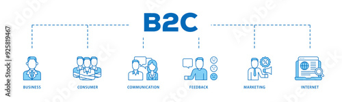 B2C icon infographic illustration concept with icon of business, consumer, communications, feedback, marketing, and internet icon live stroke and easy to edit