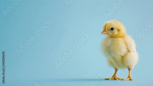 Baby chick standing on a pastel color background, giving Easter style colors.