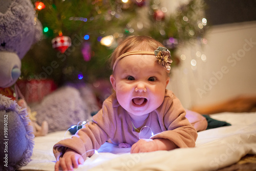 christmas, baby, children, tree, little, cute, holiday, happy, boy, children, portrait, toddler, hat, santa, christmas, decoration, smiling, childhood, white, beautiful, celebration, cheerful, red, family, person