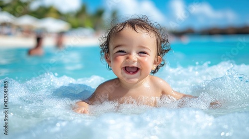 baby, children, toddler, infant, ocean, beach, wave, swimming, water, fun, happy, smile, summer, vacation, travel, sunshine, family, children, playful, adorable, cute, laughter, summer, oceanfront, tour tourism, shore, holiday, relaxing, excited, childhood, enjoying, sea, turquoise, blue, foam, bubble, seacoast, coastal, paradise, tropical, children