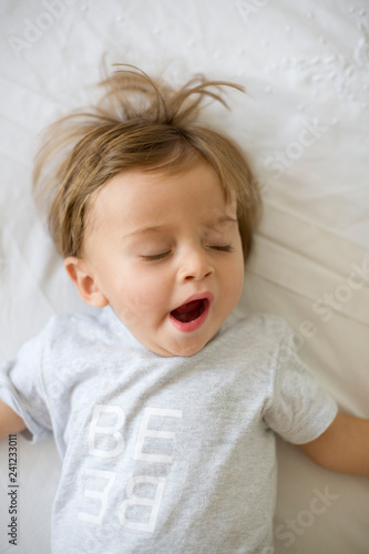 baby, yawn, eyes closed, yawning, morning, waking up, pajama, aglow, indoor, home, sleepy, slumber, nap, siesta, peaceful, sweet, lovely, cute, adorable, tranquil, calm, nice, comfort, sleepy, open mouth, exhausted, weary, fatigued, bored, tenderness, lying, bed, relaxed, dream, well-being, healthy, delicate, smooth, soft, mild, fragility, gentle, calmness