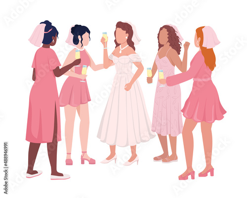 Bachelorette night semi flat color vector characters. Standing figures. Full body people on white. Festive celebration simple cartoon style illustration for web graphic design and animation
