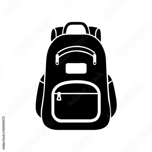backpack, simple, outline, illustration, isolated, object, vector, design, graphic, symbol, flat, signs, icon, logotype, signs, silhouette, black-and-white, shadow, shape, pictogram, editable, clip art