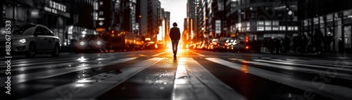 Back to Film Grainy black and white image of a bustling city street, capturing the timeless dance of light and shadow