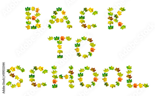 BACK TO SCHOOL text composed of autumn multicolor maple leafs