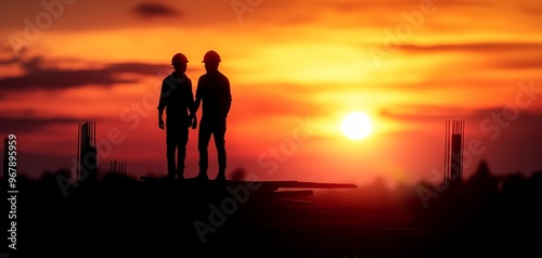 construction, men at work, safety, gear, site, sunset, glowing, industry, labor, helmet, protective, occupation, engineering, silhouette, construction site, evening, golden hour, job, professional, safety equipment, build, development, infrastructure, manual, workwear, skilled, structure, light, backlit, craftsmanship, project, secure, caution, health, environment