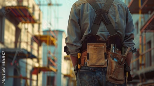 Back view of a man contractor at work inside a home for renovation and refurbishment project , complete energy efficiency renovation concept image