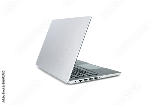 Back view of Modern slim design laptop, Aluminum material isolated on white background. template laptop Mock up. File contains with clipping path so easy to work.