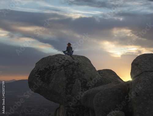 woman, yoga, sunset, cliff, meditation, vitality, zen, practice, harmony, female, flexible, meditating, energy, twilight, evening, balance, tranquil, healthy, position, spirit, condensed, meditate, body, freedom, equilibrium, perform, peace, mind, mountain, sunrise, grace, hill, peaceful, mindfulness, serene, recreation, dusk, skyline, idylli, outdoors, backview, mudra, gesture, unrecognizable, anonymous, faceless