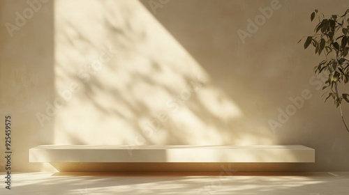 Background Beige Wall Studio Room with Light,Shadow on Table Top,Backdrop for Autumn,Fall Season product p