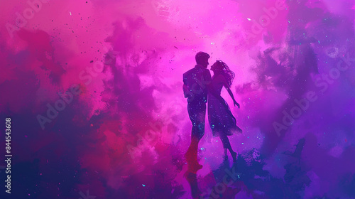 background couple man and women dancing on colorful background