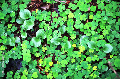 Background from plant clover four leaf. Irish traditional symbol. St.Patrick 's Day.